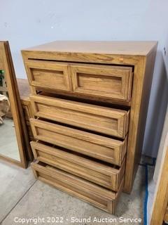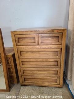 Lot #0005: Thomasville Oak 5-Drawer Highboy Dresser