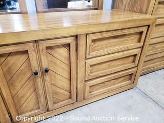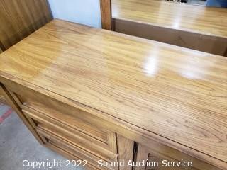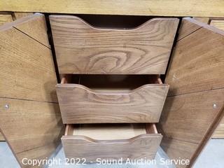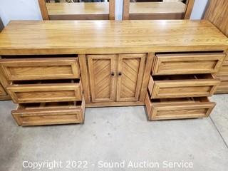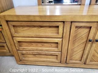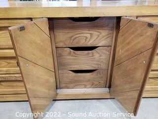 Lot #0004: Thomasville Oak 9-Drawer Dual Vanity Dresser