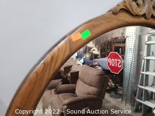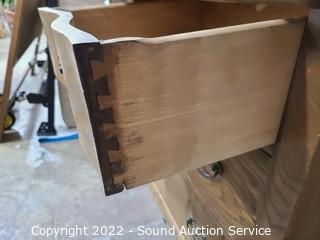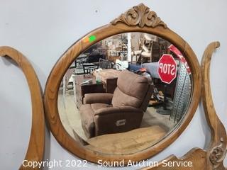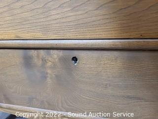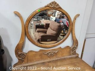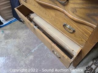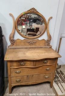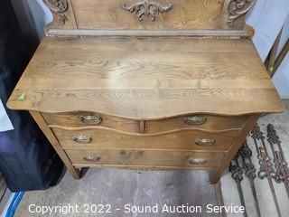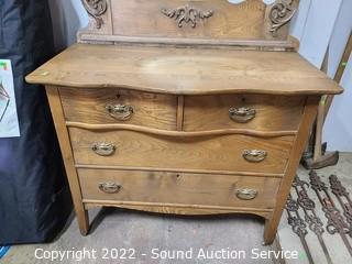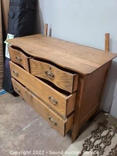 Lot #0013: Vintage Oak Partial Serpentine 4-Drawer Vanity