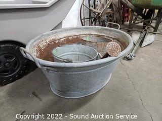 Lot #0421: Yard Cart, Galvanized Tub, Pail & Watering Can