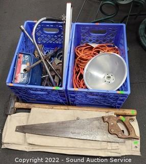 Lot #0372: 2 Milk Crates of Assorted Tools
