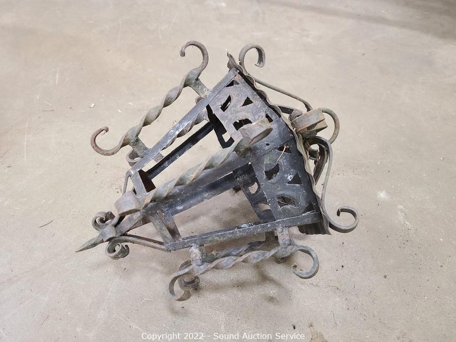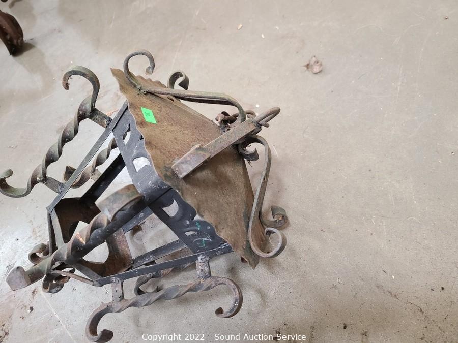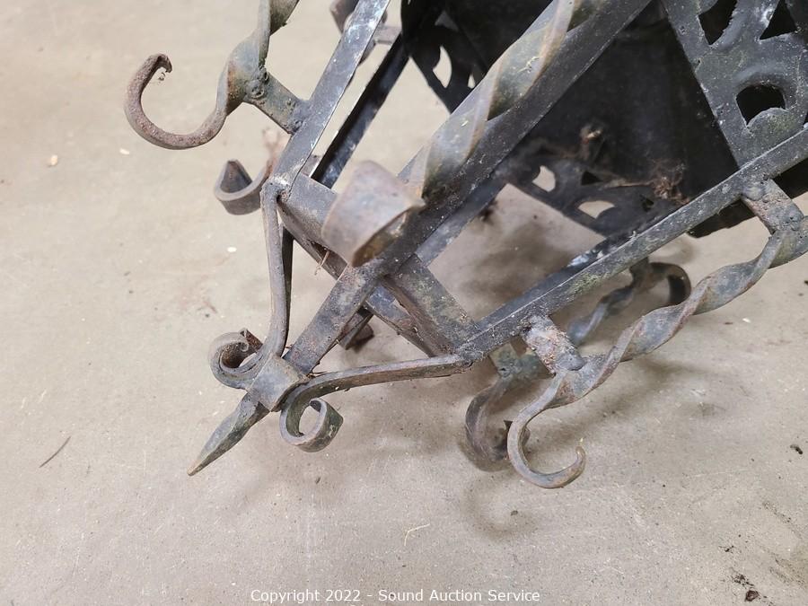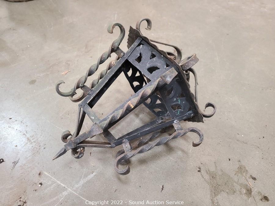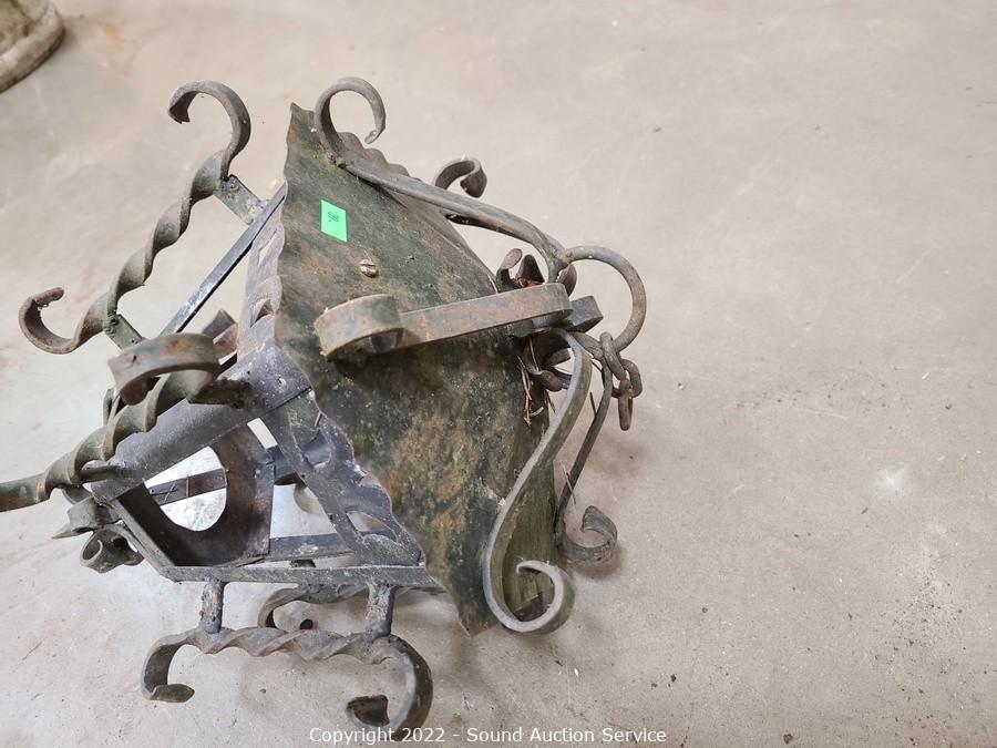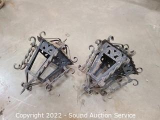 Lot #0039: 2 Wrought Iron Hanging Candle Lanterns