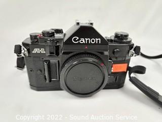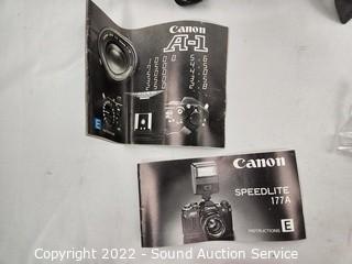 Lot #0239: Canon A-1 Camera, Various Filters, Flash, Manual