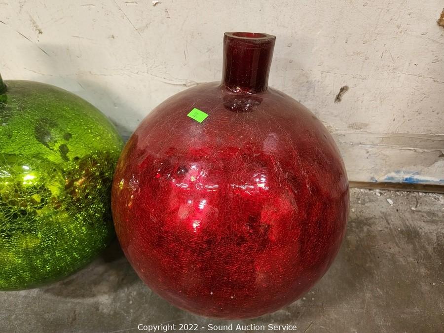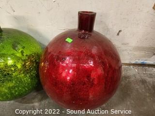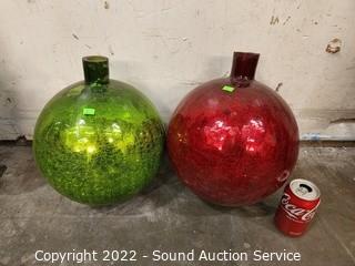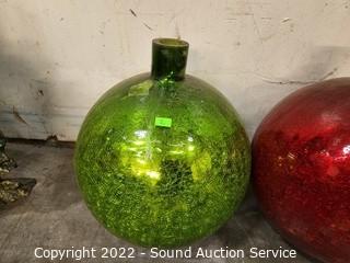 Lot #0052: Green & Red Crackle Glass 12" Gazing Balls