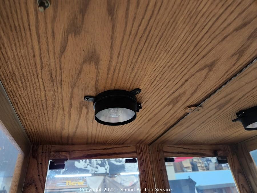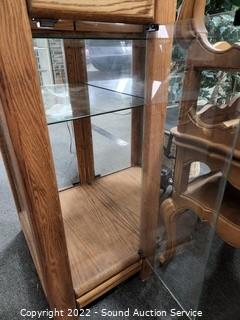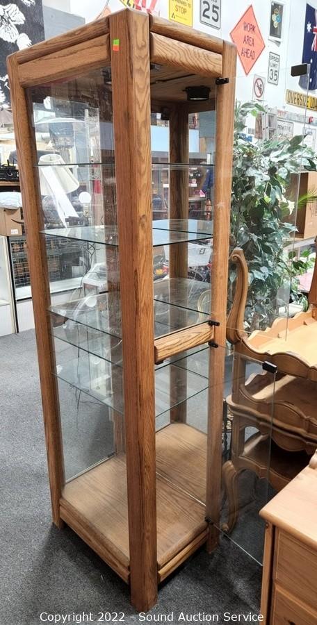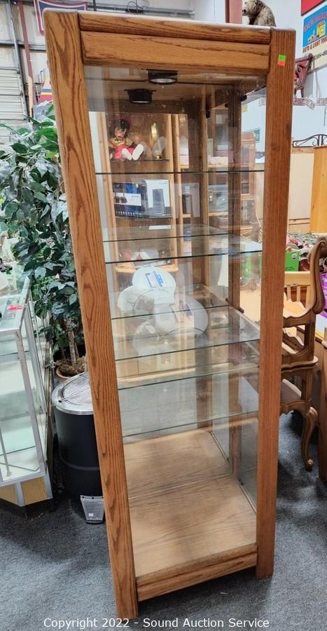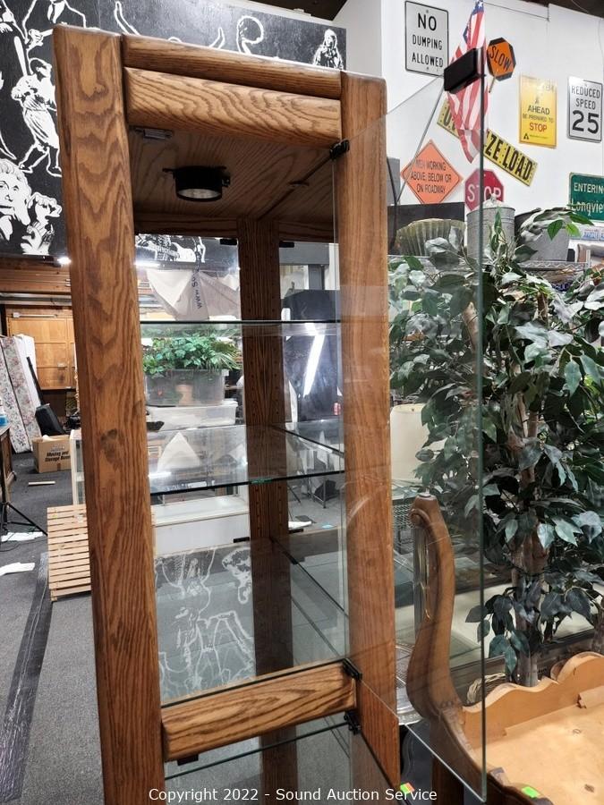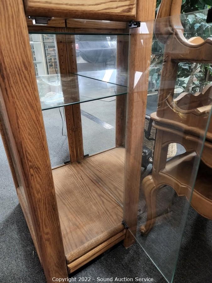Lot #0156: Lighted, Mirrored Oak Curio Cabinet