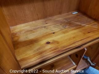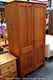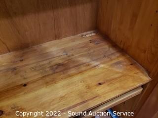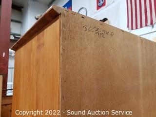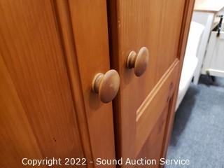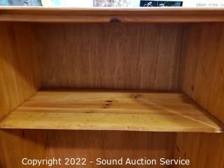 Lot Details: Wood fronts, pressboard construction, adjustable shelves. 68" x 35" x 19".
