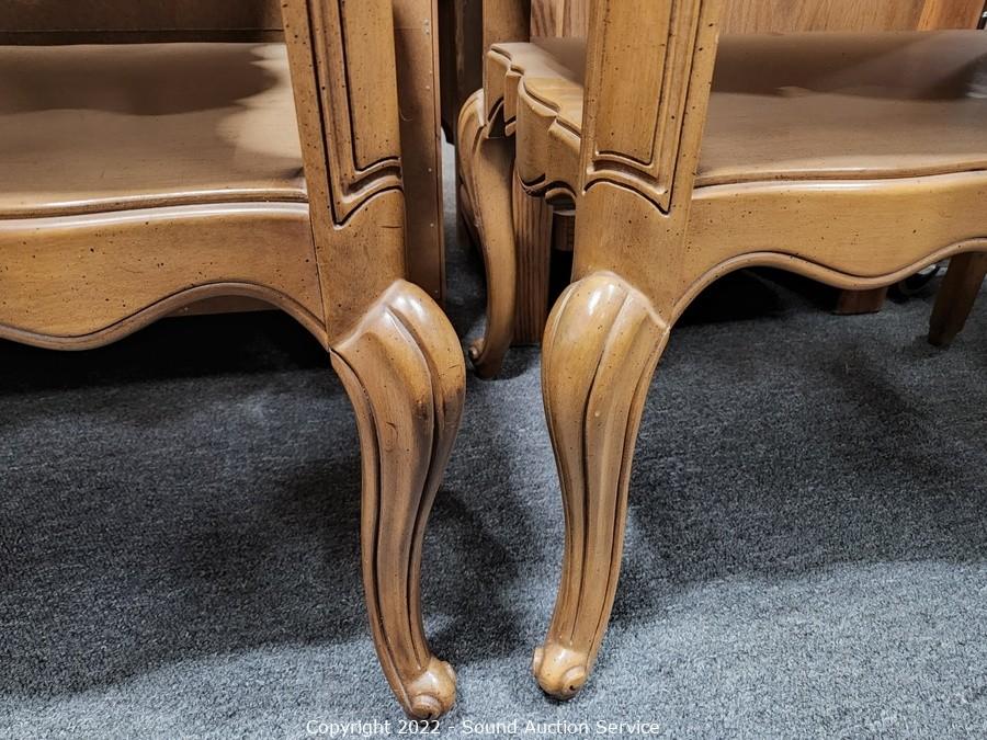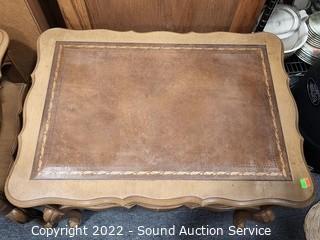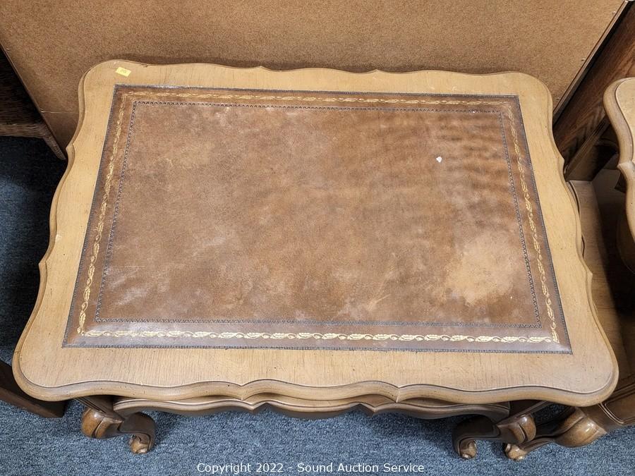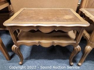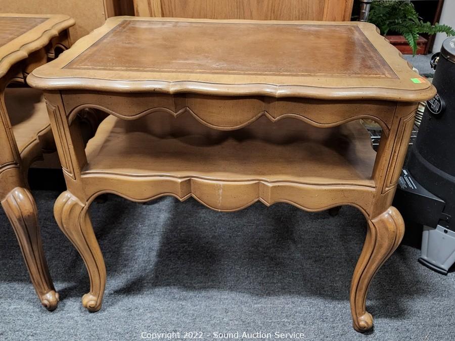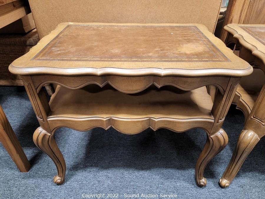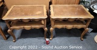 Lot #0141: Pair of 2-Tier Leather Top Side Tables