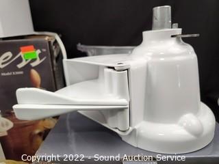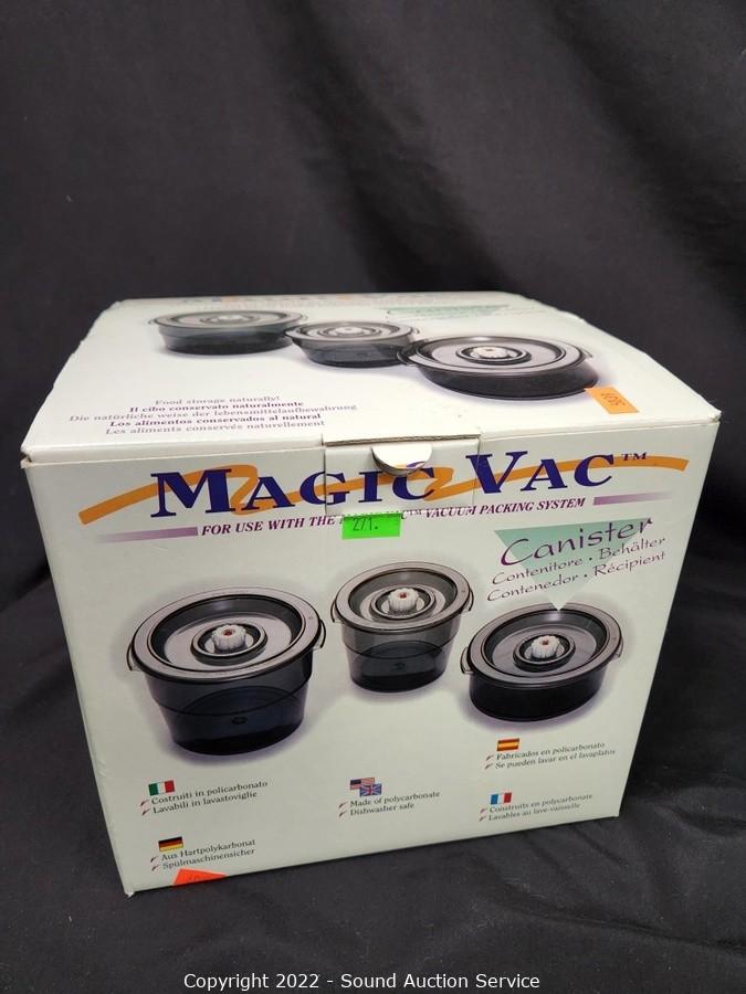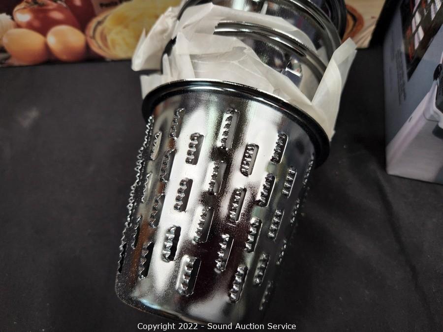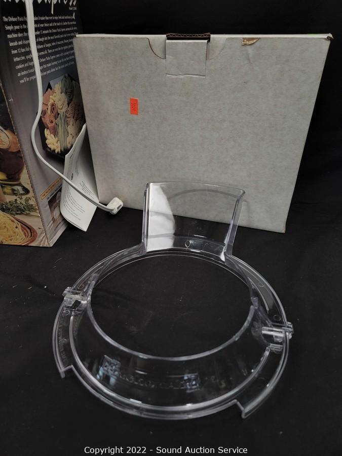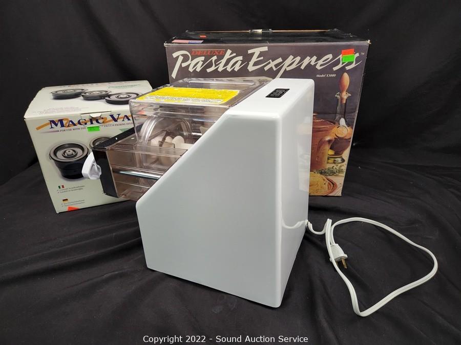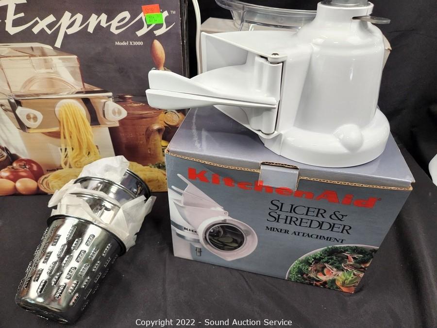 Lot Details: Pasta maker works, does not come with attachments, main unit only. 3pc Magic Vac canisters, Kitchenaid guard attachment and slicer/shredder. All come in original boxes.