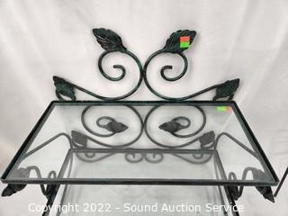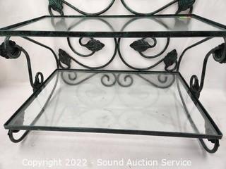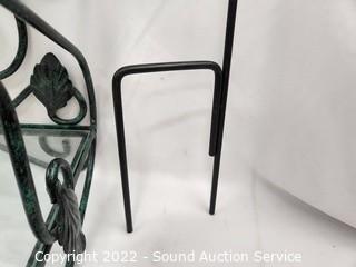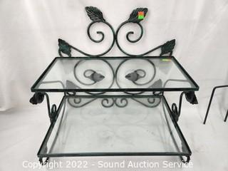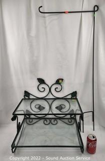 Lot #0225: Garden Stake & 2 Tier Iron & Glass Shelf