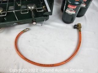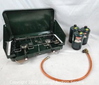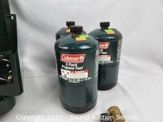 Lot #0145: Propane Camp Stove w/3 Propane Tanks