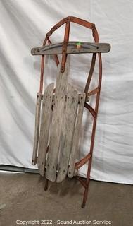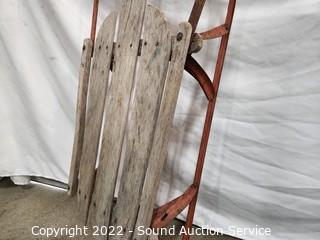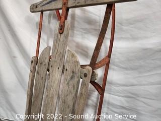 Lot #0280: Vtg. Steel & Wood Slat Sled