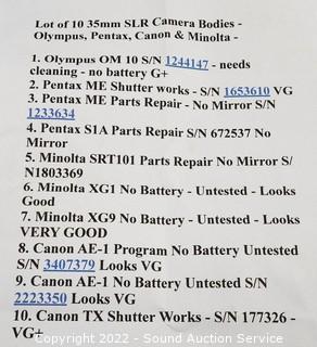 Lot #0200: (10) 35mm SLR Camera Bodies