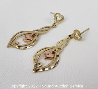 Lot #0216: 14k Yellow & Rose Gold Heart Earrings TW:2.5g