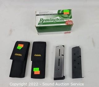 Lot #0123: 2 Colt 45 Magazines & 100pk 45 Auto Ammunition