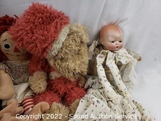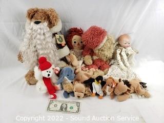Lot #0259: Assorted Stuffed Animals & Porcelain Doll