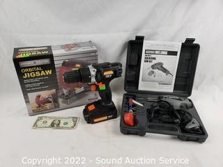 Lot #0261: Chicago Jigsaw, Soldering Kit, w/Warrior 18V Drill
