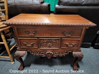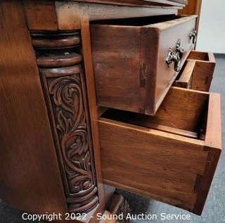 Lot #0031: Nice Mahogany Ornate 4-Drawer Credenza