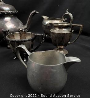 Lot #0090: Silver Plate Teapots, Cream, Sugars, Candleholders