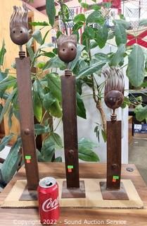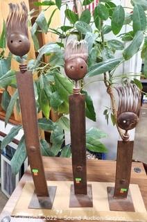 Lot #0042: 3 Rustic Metal Art Tribal Sculptures