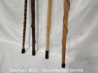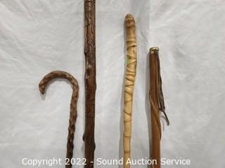 Lot #0098: 4 Nice Wood Canes & Walking Sticks