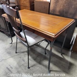 Lot #0036: Metal Base Wood Table w/Chair