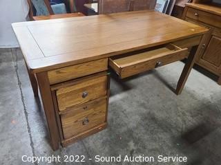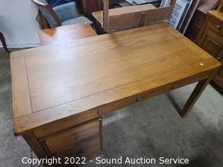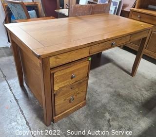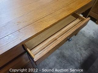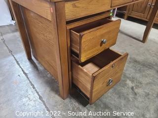 Lot #0091: Nice Oak Desk w/2 Drawer File Cabinet