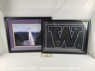 Lot #0040: WSU Huskies Logo & Mt Rainier Photograph