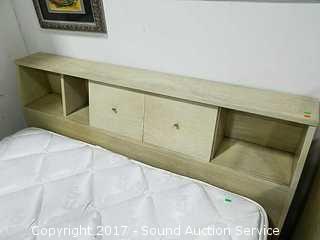 Does not include a footboard or rails this is only headboard. It is freestanding with sliding door cubby on both sides. In good condition. Approx. 38" tall, 56-1/2" wide & 8-1/2" deep.