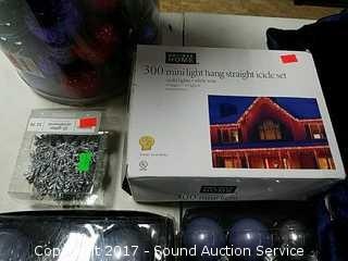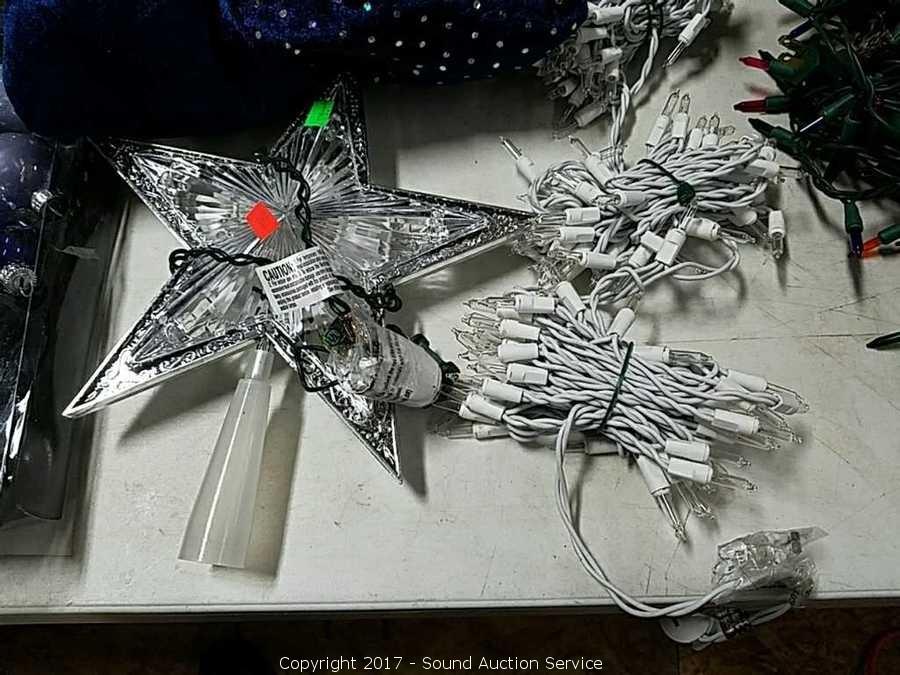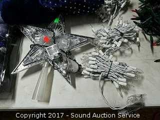 Lot #0120: Large Lot of Ornaments, Tree Topper & Lights