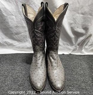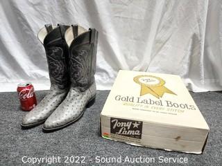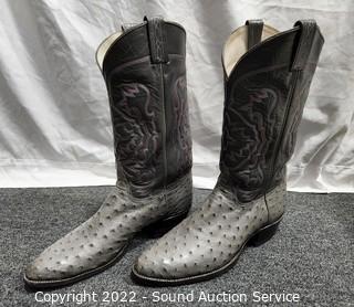 Lot #0102: Nice Tony Lama Gray Leather Cowboy Boots S:11.5
