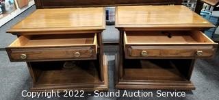 Lot #0023: Pair of Drexel Oak Single-Drawer Nightstands