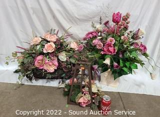 455:Lots including; Drexel 6-Chair Dining Set, Decorative Table Lamps, Vtg Mersman 3pc Mahogany Nesting Table Set, Saddle Seat Sedona Solid Wood Stools, Cast Iron Base Wood Slat Garden Bench, Assorted Lawn & Garen Decor, Cherry Finish Hutch, White & Gold Queen Bed w/Serta Mattress, Brass Queen Bed w/Sterns & Foster Mattress, Gray Distressed Finish 3-Drawer Hutch, Tents, Various Artwork, Various Sound Equipment mic/Line Mixers, Amplifiers, Speakers, Various Candles, Votives, Holders, Laser Disc Player, Pfaff 1222E Electronic Sewing Machine, Bulk Food, KitchenAid Counter Top Mixer, Assorted Canned Goods, Seraphim Angel Figures & Decor, Ladies Footwear, Evening Gowns, Jackets, Faux Houseplant Decor, Hummingbird Decor, Jewelry, Collectible US Coins, Patio Furniture & So Much More!!!