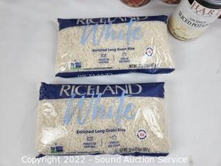 455:Lots including; Drexel 6-Chair Dining Set, Decorative Table Lamps, Vtg Mersman 3pc Mahogany Nesting Table Set, Saddle Seat Sedona Solid Wood Stools, Cast Iron Base Wood Slat Garden Bench, Assorted Lawn & Garen Decor, Cherry Finish Hutch, White & Gold Queen Bed w/Serta Mattress, Brass Queen Bed w/Sterns & Foster Mattress, Gray Distressed Finish 3-Drawer Hutch, Tents, Various Artwork, Various Sound Equipment mic/Line Mixers, Amplifiers, Speakers, Various Candles, Votives, Holders, Laser Disc Player, Pfaff 1222E Electronic Sewing Machine, Bulk Food, KitchenAid Counter Top Mixer, Assorted Canned Goods, Seraphim Angel Figures & Decor, Ladies Footwear, Evening Gowns, Jackets, Faux Houseplant Decor, Hummingbird Decor, Jewelry, Collectible US Coins, Patio Furniture & So Much More!!!