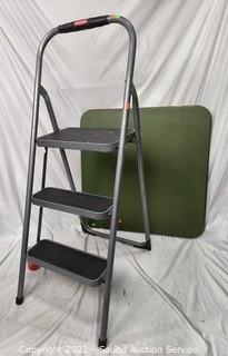 Lot #0220: Rubbermaid 3-Step Stool & 30" Folding Table