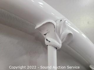 455:Lots including; Drexel 6-Chair Dining Set, Decorative Table Lamps, Vtg Mersman 3pc Mahogany Nesting Table Set, Saddle Seat Sedona Solid Wood Stools, Cast Iron Base Wood Slat Garden Bench, Assorted Lawn & Garen Decor, Cherry Finish Hutch, White & Gold Queen Bed w/Serta Mattress, Brass Queen Bed w/Sterns & Foster Mattress, Gray Distressed Finish 3-Drawer Hutch, Tents, Various Artwork, Various Sound Equipment mic/Line Mixers, Amplifiers, Speakers, Various Candles, Votives, Holders, Laser Disc Player, Pfaff 1222E Electronic Sewing Machine, Bulk Food, KitchenAid Counter Top Mixer, Assorted Canned Goods, Seraphim Angel Figures & Decor, Ladies Footwear, Evening Gowns, Jackets, Faux Houseplant Decor, Hummingbird Decor, Jewelry, Collectible US Coins, Patio Furniture & So Much More!!!