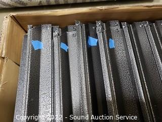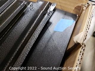 Lot Details: 72" H x 48" W x 24" D. Used, complete. Metal sides have a few slight bends, 1 shelf has 2 cracked corners.