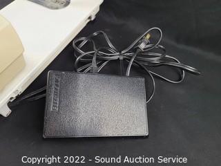 Lot Details: Motor works, belt needs replaced, needle not moving so well. Comes with power supply and foot pedal.