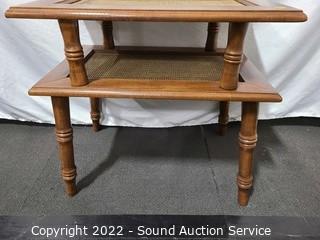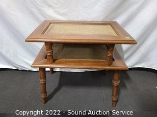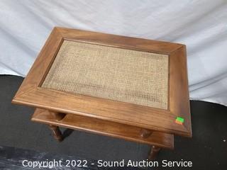Lot #0004: 2-Tier Mahogany Woven Top Side Table