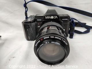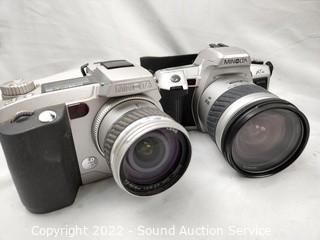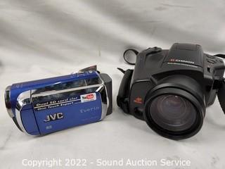 Lot Details: Chinon Auto GL-11, JVC Everio video camera, Pentax Zoom 90-WR, Kodak Instamatic X-35, Samsung Maxima Zoom 80Ti, Minolta Maxxum 7000 with AF Zoom 100-200mm 1:45 (22) lens, Minolta DiMage 7i digital camera, Minolta Maxxum XTsi with AF Zoom 28-80mm 1:35 (22) -5.6 lens, Kodak Camero Motor EX and Chinon Genesis III. All are untested.