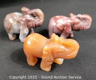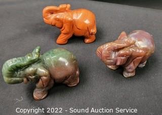 Lot #0333: Assorted Carved Stone Elephant Sculptures