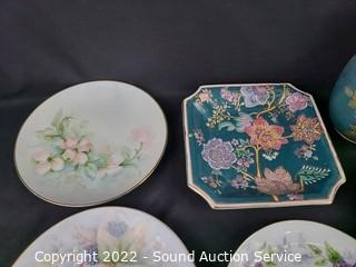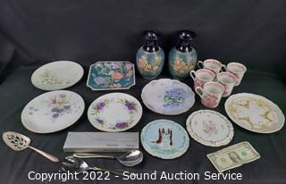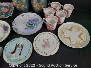 Lot Details: German, Andrea by Sadek, Langlay Mill England vases, hand painted, Mikasa hostess set, J.G.Meakin cups.