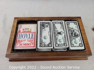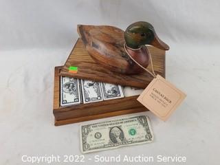 Lot #0246: Carved Wood Duck Box w/Poker Set
