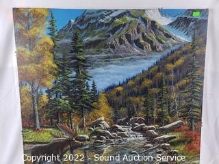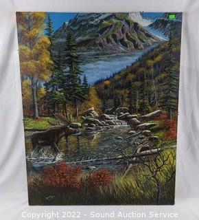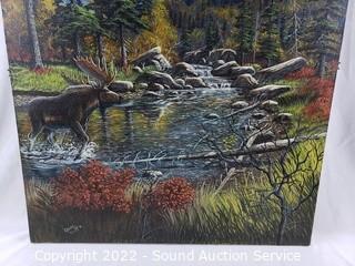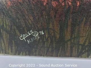 Lot #0191: Cross W.E. Signed Moose Crossing Alaskan Painting
