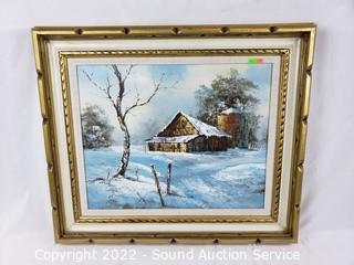 Lot #0378: Original Jason? Signed Farmhouse Oil Painting