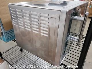 Lot Details: Used, works. Missing broiler pan, bottom crumb tray, mesh rack. Some discoloring on the side. 12.9" H x 21.7" W x 19.3" D.