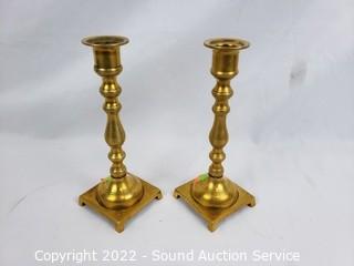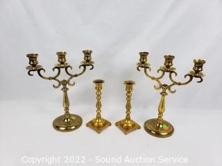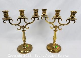 Lot #0153: Pair of Brass Candleholders & Candelabras