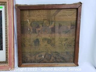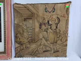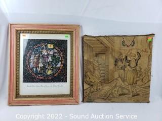 Lot Details: Tapestry frame is loose, some nails coming out the side. 18" x 18" & 21.5" x 18.5".