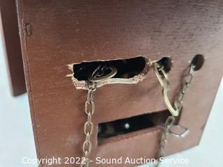 Lot Details: Unknown condition, one chain hook is too far up inside the clock to get a weight on, otherwise complete and in good condition. 7.5" x 5.5" x 5".
