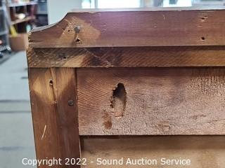 Lot Details: Some wear to finish, discoloring spot on top. 36" H x 47" W x 18" D. Dovetail joinery.
