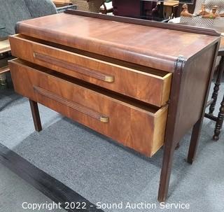 Lot #0001: Vtg. Mahogany Waterfall 2-Drawer Buffet